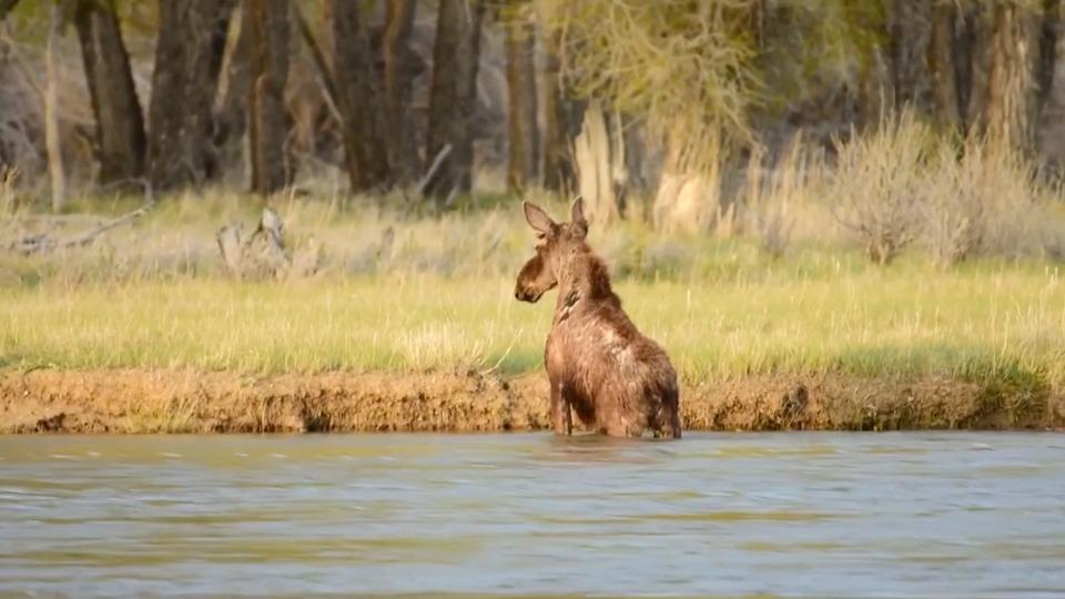 Moose Swims Up River