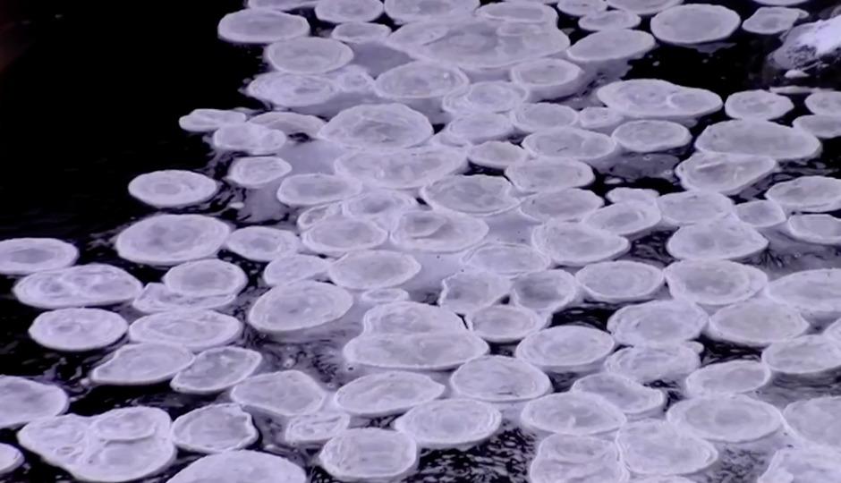 Ice Pancakes Form on River in Scotland